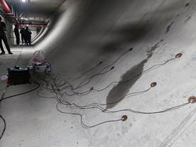 在无数次的理论推导计算与模拟实验后,恰逢公司解封,团队立即随着指导老师一起去了南京的江心洲隧道做了实地的试验。经过与隧道施工人员的沟通与对隧道结构的分析,最终选取了遂道一端夹层的侧面作为项目的试验场地。