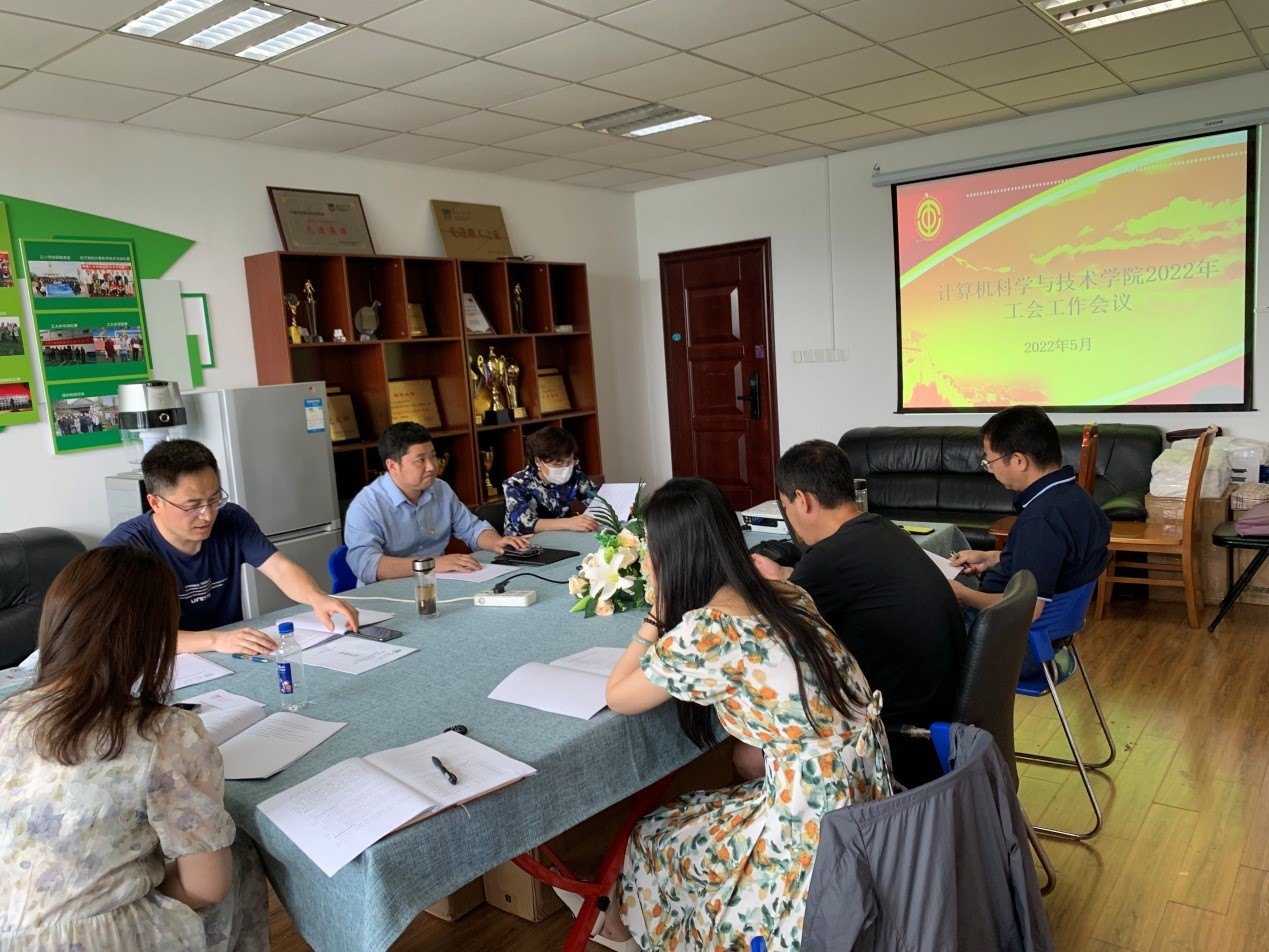 2022年5月25日下午2点,在崇德楼A楼620计算机公司教工之家召开了计算机公司2022年工会工作会议,传达学习公司工会会议精神及工作要点,讨论部署公司工会2022年工作要点及开展政治理论学习。公司党委书记高辉庆,院工会主席徐少春,全体工会委员,心理气象员刘军、杨曌,教代会代表赵璐等参加了会议。