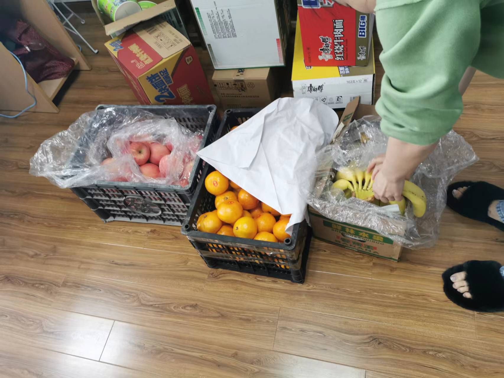 1.第一时间为老师采购牙刷、牙膏、被子、床垫、袜子、口罩、毛巾、护手霜、方便面、水果等必需品;