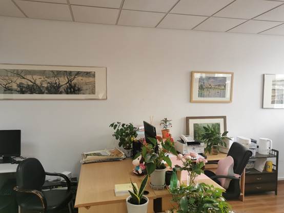 为提升教师办公环境,营造温馨和谐氛围,公司工会为系部教研室、教授工作室、行政办公室、一楼大厅等购置了绿植,即增加了观赏性又营造了健康温馨的环境,为教研室、行政办公室等装饰了书画作品,营造了办公室的艺术氛围。教工之家建设方面,装饰了教工之家,增设了男女淋浴房,配备了按摩椅、拉力器、球拍、瑜伽垫等,场地环境得到了改善,为教工提供了完善的休憩空间。