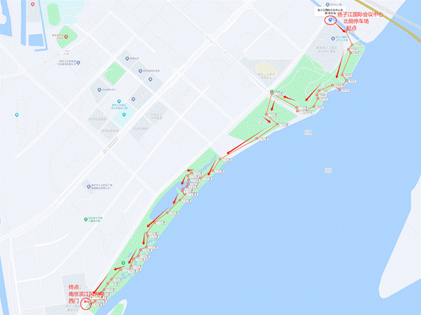 (起点:扬子江国际会议中心北门,途径:扬子江生态公园1号岗,终点:南京滨江风光带西门)