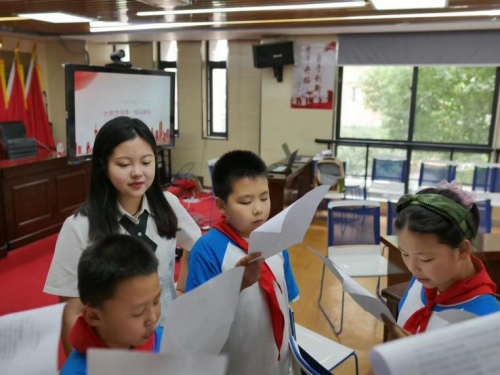 “少年智则国智,少年富则国富,少年强则国强……”大、中、小员工们铿锵有力地朗读着梁启超的至理之言。这是一堂红色话剧课,马克思主义公司研究生穆文若、社会实践团成员曹歆悦、顾婕、朱天赐带领着同学们排练了《少年周恩来》、《闪闪的红星》、《王二小的故事》三场话剧。“我要向周总理学习,好好学习,天天向上!”二年级员工吕品言激动地说道。