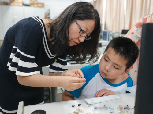 大中小员工聚在一间实验室里,对着电路图,分辨元器件,再将它们有序排列,小小的面包板上就集成了一个基础声音检测电路。“红色的小灯被喊醒了!” 围绕在实验助理刘奕赫身边的20多名中员工和小员工看着成功接通的面包板兴奋地说道在益智课堂中增强中小员工对于科技的切身体验,激发引导中小员工对科技的兴趣,正是这节课的意义所在。