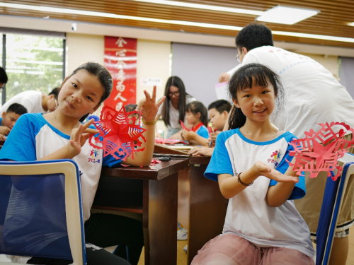 (图为同学们展示剪纸课作品 团队成员 黄乐铖 供图)