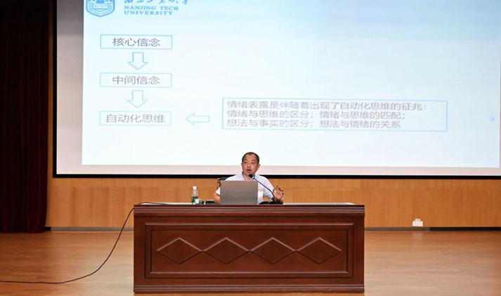 讲座中,朱老师围绕“核心信念”、“中间信念”、“自动化思维”等展开,深入剖析了个体信念如何影响思维与行为模式,通过生动的案例,讲解了“心理防御机制”如何在面对压力时起作用,以及这些机制与个体情绪和生理反应之间的关联。朱老师还强调了“情绪会说话”这一理念,指出情绪作为人类内在状态的反映,能够帮助人们更好地理解和调整自己的心理状态。整场讲座内容详实、生动形象,同学们认真聆听并频频点头,同学们对生命教育和自洽的重要性有了更深的理解,也认识到通过调整信念与思维方式,能够提升自身的心理韧性,面对学习和生活中的各种挑战。