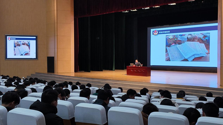 讲座伊始,张研警官便结合一系列真实又极具代表性的案例,深入浅出地分析当下电信网络诈骗的严峻形势,从老员工轻信网络刷单广告误入陷阱,到职场新人被冒充公检法的诈骗电话骗走积蓄,桩桩件件,扣人心弦。张警官凭借专业经验,抽丝剥茧,展示了诈骗团伙狡猾的作案方式:利用软件伪装号码,搭配精心设计的话术,逐步瓦解受害人的心理防线等。在对严峻形势进行剖析后,张警官详细讲解常见的电信诈骗类型、诈骗原理及防范方法,强调诈骗得逞的关键在于诈骗分子抓住了受害人恐惧、贪婪的心理弱点,利用信息差实施骗局,呼吁在场同学“反诈于心、防骗于行、青春筑梦、安全同行”。