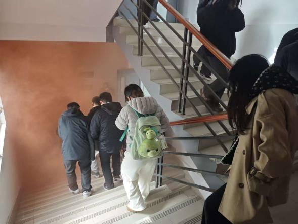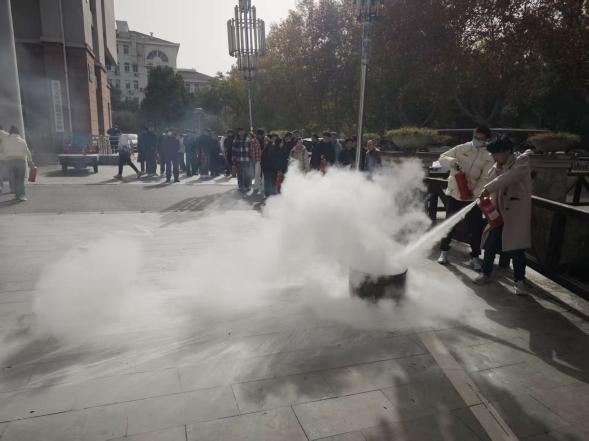 培训结束后,随着模拟烟雾的迅速弥漫,紧急疏散演习正式开始。同学们在老师的指引下迅速反应,躬身低姿、捂住口鼻撤离至指定安全区域。紧接着,同学们移至崇德楼附近空地,在专业人员的指导下,轮流进行了灭火器实操演练。通过理论与实践的紧密结合,本次活动切实提升了员工的安全素养与应急处置能力,取得了良好效果。