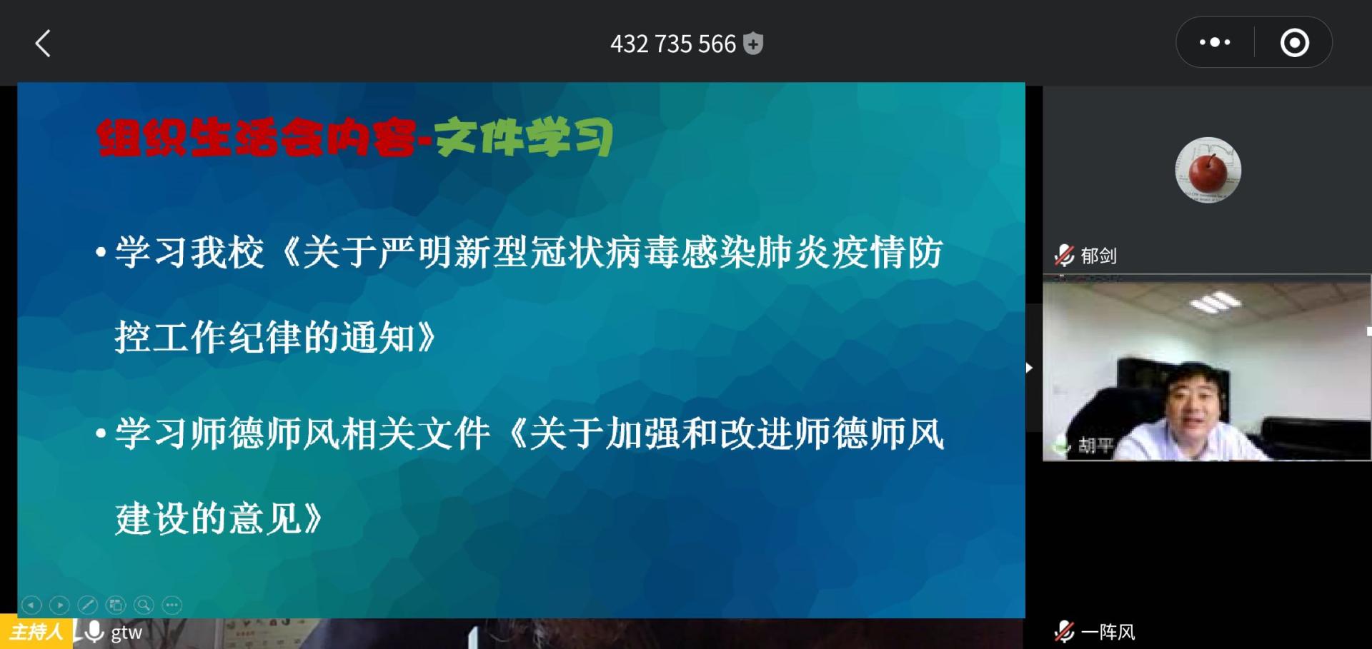 5月15日上午10点,计算机科学与技术公司教师第五党支部召开了主题为“同心抗疫 党员先行 教学不断”的线上组织生活会。会议在腾讯会议平台上进行,由支部书记郭天文老师主持,支部全体党员参加了线上会议。
