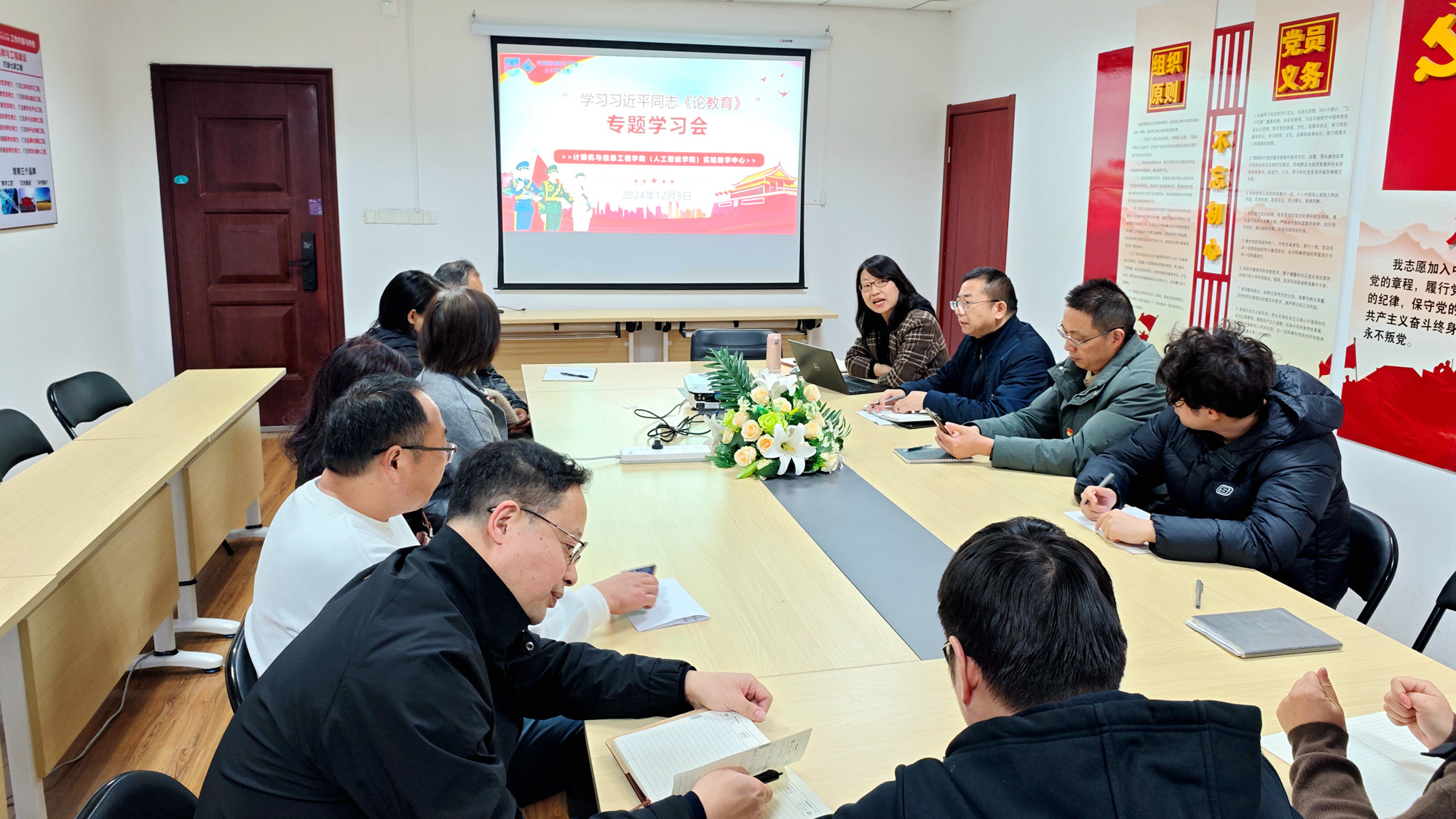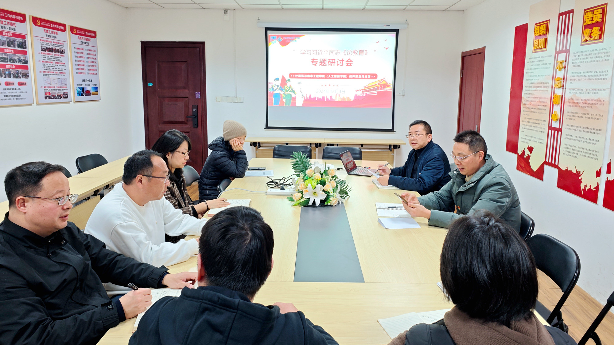 专题学习会结束后,支部随即召开了支部党员大会,围绕习近平《论教育》展开专题研讨。支部书记景朋森同志结合支部实际,提出了加强支部建设、深化教学改革、服务地方发展、提升党性觉悟的四大行动方向。他强调,支部要发挥战斗堡垒作用,教师需坚守为党育人、为国育才的初心,将立德树人贯穿教育全过程。