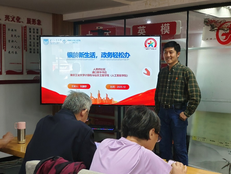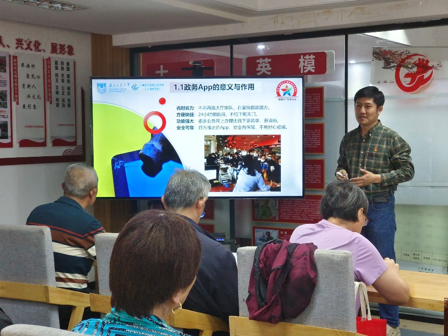刘望舒老师以数字新时代,政务办理更轻松为主题,介绍了我国数字政务的发展现状,详细讲解了“国家医保服务平台”“电子社保卡”“我的南京”等常用政务服务App的功能与操作方法。他结合老年群体的日常需求,现场演示了医保余额查询、养老金认证、医院预约挂号、公积金查询等高频功能,让大家直观感受到数字政务带来的便捷与高效。