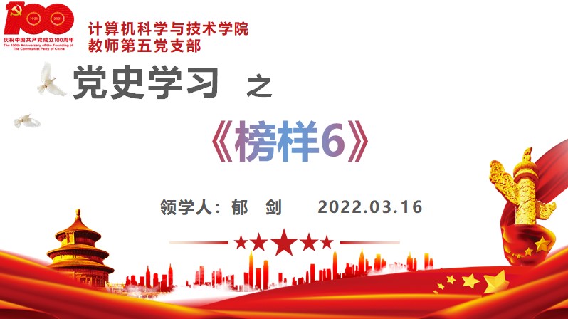 随后,由党支部副书记郁剑同志领学了《榜样6》,结合会前自学观看《榜样6》视频,大家深有感触的说:“优秀党员们的榜样事迹平凡而普通,就是这些我们生活中,最常见却又最容易被忽视的细节,让人感动。作为新时代高校教师,我们要向榜样看齐,不忘初心,砥砺前进,忠诚担当,爱岗敬业,无私奉献,切实履行好新时代高校教师的职责任务。”我们今后要立足本职,从身边做起,从点滴做起,传递榜样力量,学习、宣传、贯彻榜样精神。